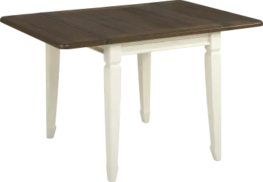 Bring home the charm of cottage styling with the Country Lane collection. It features a 40 x 78-inch rectangle table surrounded by slat back side chairs. Each piece is crafted with acacia veneers in a beautiful two-tone brown and antique white finish.