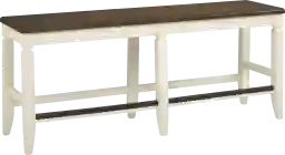 Casual and charming, the Country Lane counter height bench serves up seating for two. Crafted with acacia veneers, the bench has a brown seat and antique white legs.