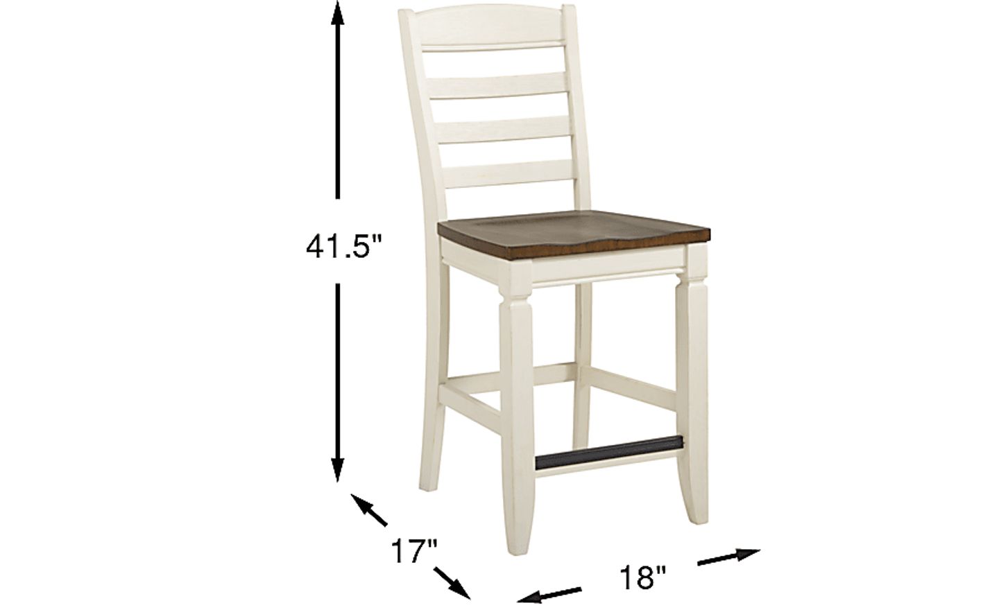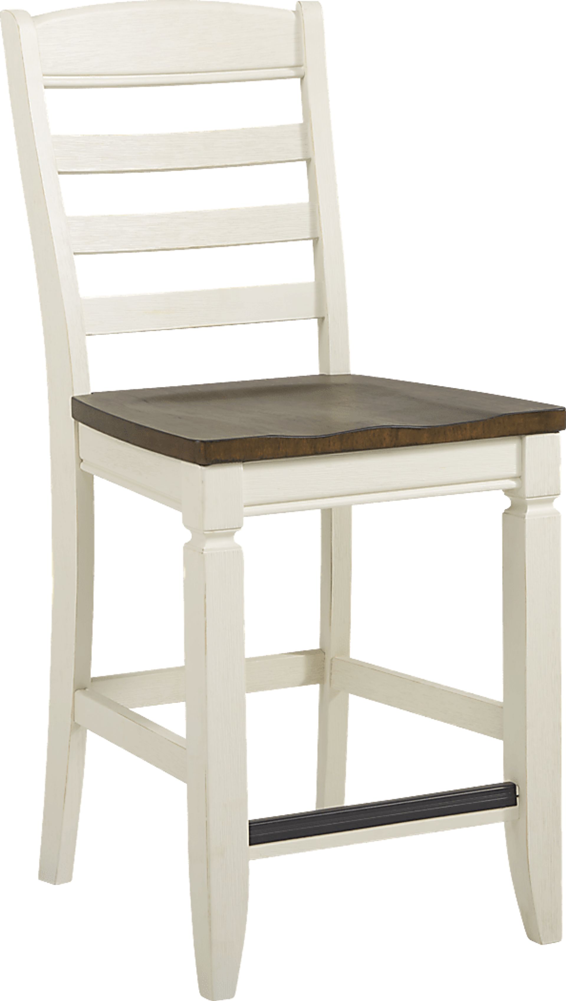 Cottage style charm and the warmth of a two-tone finish make the Country Lane counter height stool a wonderful choice. The stool has a classic ladder back and contoured seat in a rich brown finish. Tapered legs and stretchers in an antique white offer support in a dashing contrast of color.
