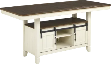 Perfect for serving any meal, the Country Lane dining table is an inviting gathering place. The 40 x 78-inch rectangle top is finished in a rich brown while the apron and legs boast an antique white color. Four storage drawers provide a handy spot for utensils, napkins and more.