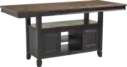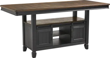 Bring home the charm of cottage styling with the Country Lane collection. The 34 x 78-inch rectangular top in a brown finish and Industrial-inspired metal accents offer a beautiful contrast to the table's antique white finish. For practical and convenient storage, the table's base features an adjustable shelf and open cabinets fronted by sliding doors. The farmhouse aesthetic creates a welcoming, relaxed sense of style.