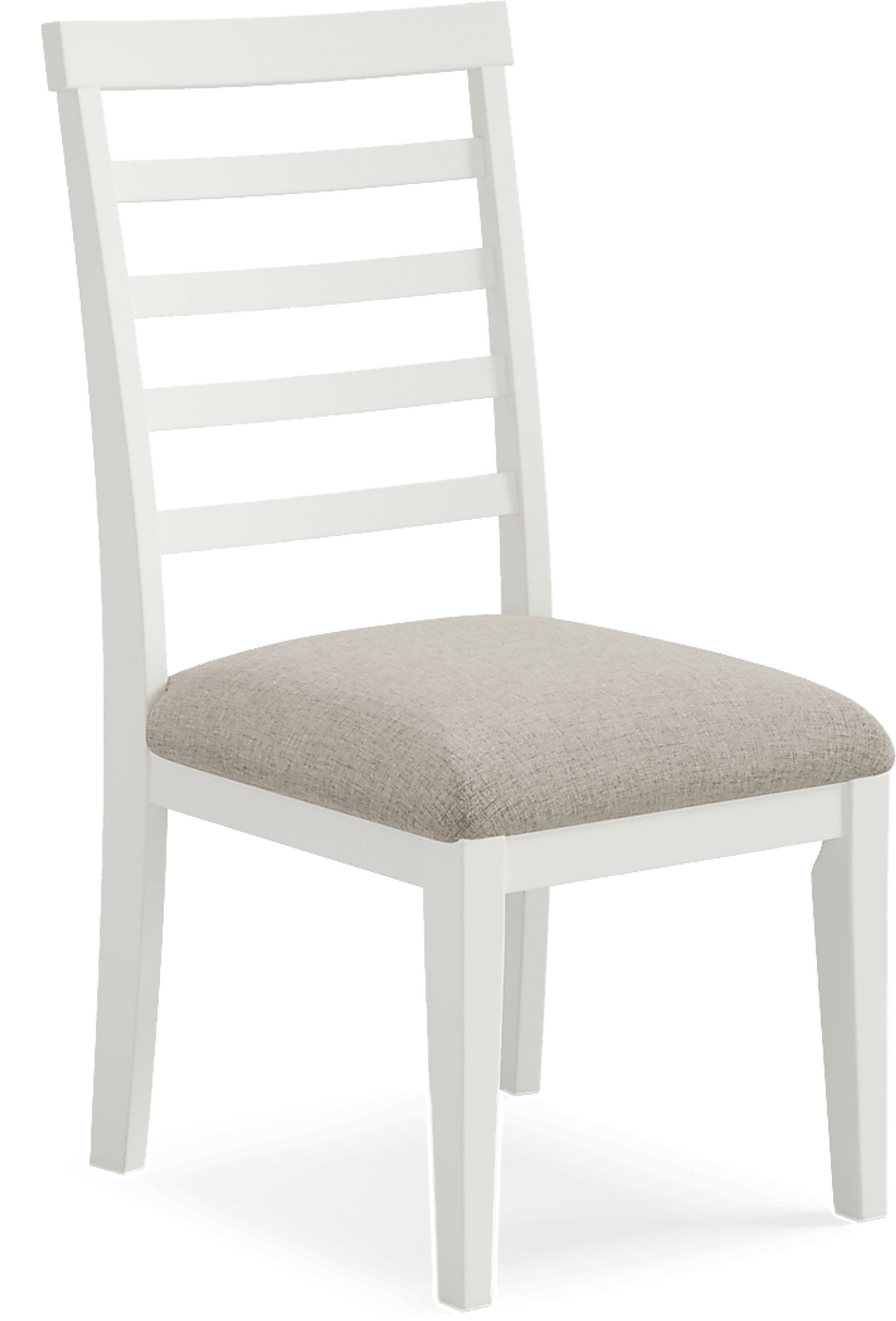 Featuring a ladder back and an amply padded upholstered seat, the Countryside Cottage chair pairs perfectly with a variety of styles. It boasts a construction of oak veneers in a bright white finish for transitional charm.