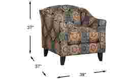 A playful pattern and woven upholstery make the Court Street accent chair an excellent choice. The medallion theme is on-trend and features wonderful shades of beige, tan and gray. Slim arms, welted seams and tapered legs conspire to create a contemporary silhouette. The seat cushion is reversible. 100% Polyproylene.