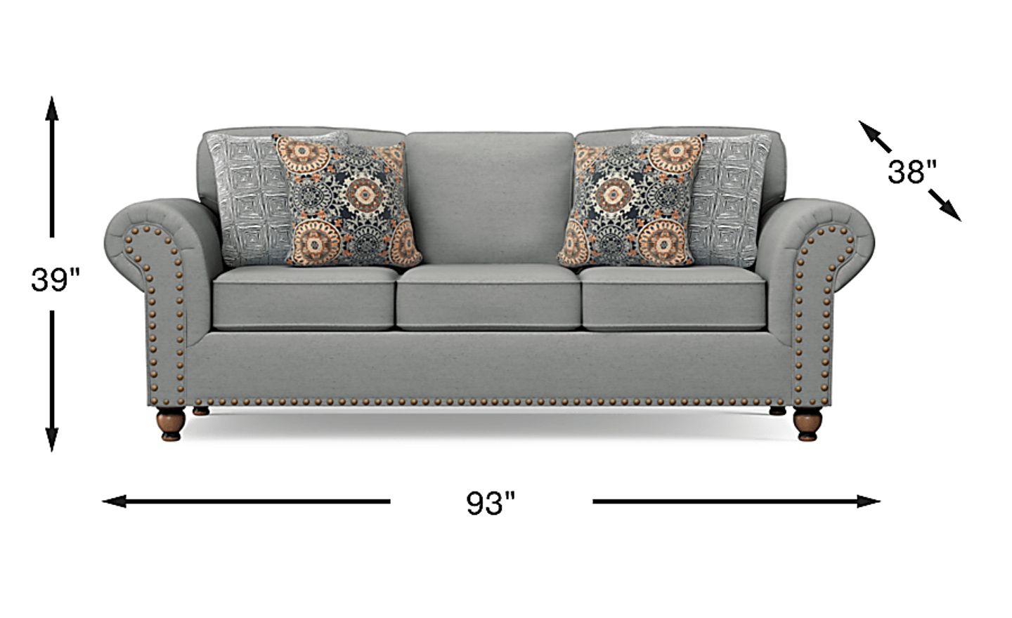 Chic transitional style, comfort and versatility blend beautifully on the Court Street sleeper. It features tailored details and a sophisticated silhouette created by pleated rolled arms, nailhead trim, welted seams and turned legs in a rich brown finish. The sofa's gray woven fabric offers the perfect backdrop for the designer-inspired medallion and diamond patterned accent pillows. Tucked away and easily pulled out for overnight guests, the sleeper boasts a queen sized Nature's Bed Reflection mattress with gel memory foam comfort. Reversible back and seat cushions extend the life of the sofa adding overall value to the stylish aesthetic. 100% Polyproylene.