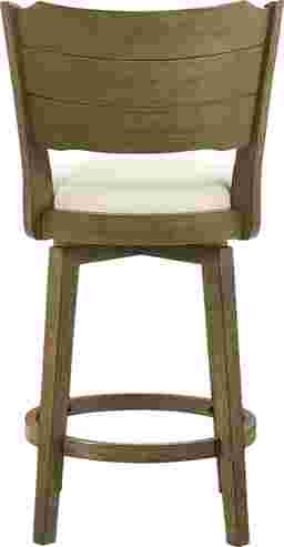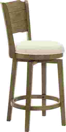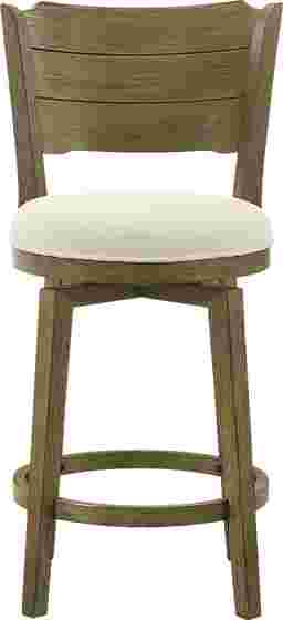 The Covencaster counter stool brings timeless craftsmanship together with modern comfort, offering a versatile swivel stool that complements both classic and contemporary interiors. Defined by its sculpted ladder-back silhouette and plush boucle-upholstered seat, Covencaster captures the balance between elegance, functionality, and everyday ease. Built with a strong solid natural wood frame. This finish pairs beautifully with the white boucle performance fabric, creating a sophisticated yet inviting visual contrast. The boucle upholstery adds tactile depth and softness, while its performance-grade construction ensures resistance to stains, moisture, and fading, ideal for active homes and social spaces. The Covencaster stool's 360-degree swivel functionality allows for effortless movement, making it perfect for open-concept kitchens, dining bars, and casual gathering spaces. Its round cushioned seat provides exceptional comfort and support, while the curved ladder-style backrest adds bo