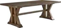 The cozy magic of an old world cottage comes to life amid the crisscrossing trestles of the Covered Bridge dining table, brightening mealtime with the warmth reminiscent of a blazing hearth. The richly textured 86" tabletop of this mealtime essential is finished in tobacco brown and extends to an impressive 126" with two included 20" leaves. The base features large crisscrossing beams in the same finish for an impressive profile.