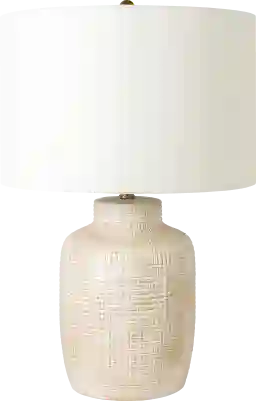 The elegant Crabtree Grove lamp is the perfect addition to any cottage-style room. Crafted with a combination of ceramic in a white finish, linen, metal and polyester materials, this lamp will bring classic charm and timeless beauty to your home. The beige linen lamp shade adds a touch of sophistication while the 26 inch total height offers ample lighting for any space. Add this piece to your living room or bedroom for an instant cozy and inviting atmosphere. Partial assembly may be required.