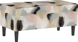 The Creamy Hues bench adds a touch of mid-century mood to your home. Finished in beige polyester cotton blend with black wood legs. Featuring hinge cushion lid that is perfectly proportioned storage space. Customer assembly is required. This piece is made to order and may take up to 6 weeks to deliver.