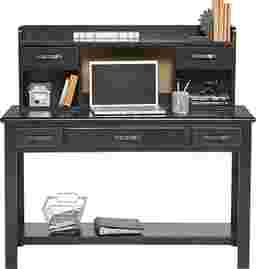 With its timeless look and durable construction, the Creekside computer desk and hutch can be used throughout your child's school years. Made of pine solids with a charcoal finish, the desk includes three drawers and industrial-style hardware pulls. The hutch has open shelves for books or display, a cut out in the back for wire management, and two additional drawers. The convenient corkboard is a great place for posting pictures, schedules or just about anything!