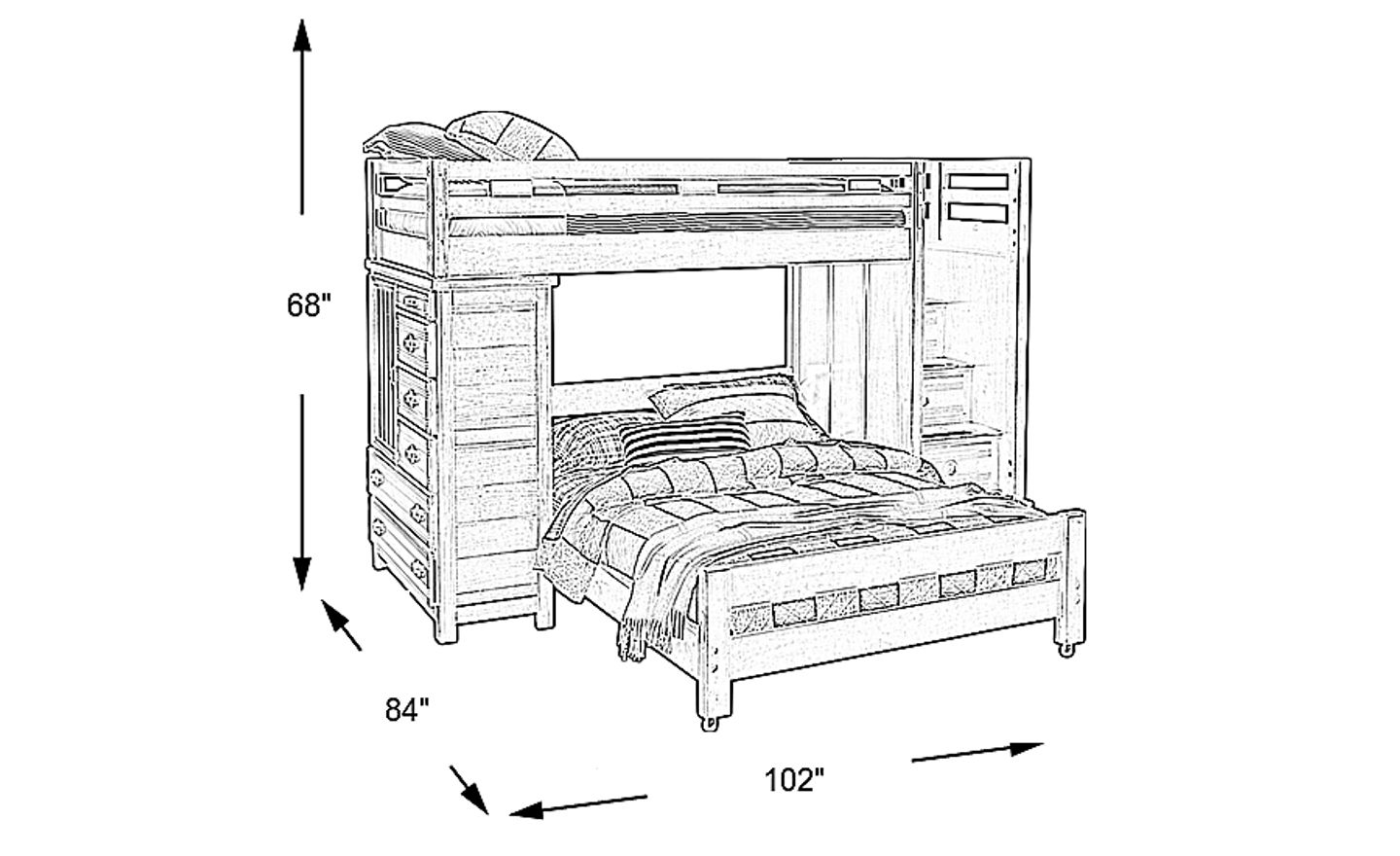 The Creekside twin/twin step bunk makes the most of the space in your child's bedroom. On one side, you'll find a storage chest with six drawers and shelf space fronted by a door. The opposite side has steps that lead to a twin top bunk. Each step has skid resistant textured strips and built in storage drawers. The twin bottom bed is on casters so it can be moved easily. Durable construction is achieved with pine solids and topped off with a charcoal finish. Mattresses and foundations (if required) sold separately. Bunkies required for mattress support. Bunk not as shown; bottom bed shown in room image is twin size.