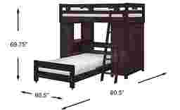 Clever and charming styling makes the Creekside twin/twin bunk a winning choice for your child's bedroom. At one end you'll find a built in desk perfect for homework; the other end is completed by a full height chest with six drawers and a cabinet to meet all their storage needs. The bottom bunk can accommodate an optional trundle storage drawer, sold separately. Crafted with pine solids and veneers, the charcoal finish adds wonderful visual appeal. Mattresses and foundations (if required) sold separately.