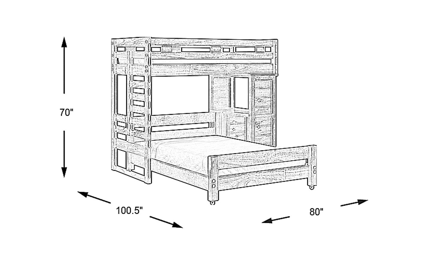 The Creekside twin/full loft offers a wonderful combination of rustic charm and space saving design. One side of the twin loft has a built-in desk, the other side has a built-in ladder. A full loft on casters is tucked underneath. All components are crafted of pine solids with a delightful chestnut finish. Mattresses and foundations (if required) sold separately. Bunkie Boards required for mattress support.