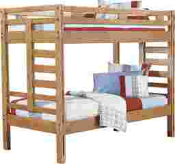 Charming sleeping space for siblings or sleepovers makes the Creekside bunk bed a wonderful choice. Built in ladders on each side make access to the top bunk easy; no separate ladder is needed! Knotty pine characteristics, a taffy finish and space for a trundle drawer, sold separately, add value to this appealing bunk bed. Mattresses and foundations (if required) sold separately. Bunkies required for mattress support.