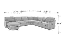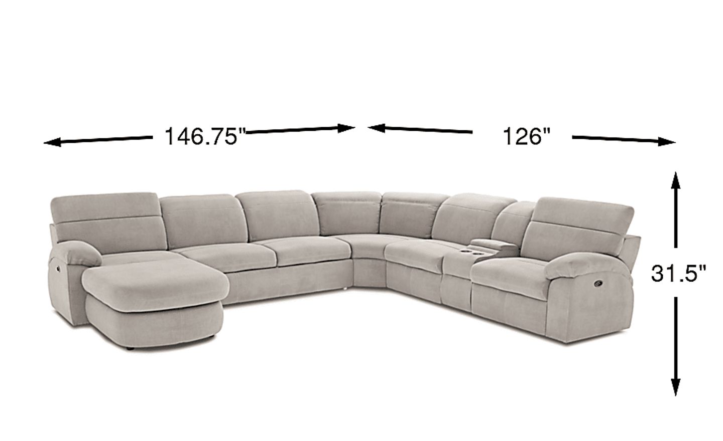 Packed with special features, the spacious Crescent Place power reclining sectional makes a stylish spot to relax and entertain. Upholstered in gray woven fabric, this sectional comfortably seats up to six people. Three of the chaise-style footrests recline at the touch of a button, allowing you and your guests to easily kick back. Perfect for stowing away blankets or pillows, the chaise opens to reveal hidden storage. A pop-up sleeper in the center conveniently accommodates overnight stays. Designed for customized comfort, the ratchet-style headrests are manually adjustable. Two cupholders and a lift-top compartment in the console offer space to keep drinks and other items close at hand. Contrast stitching adds a touch of detail, while padded pillowtop arms lend a plush feel. Upholstery: 100% Polyester