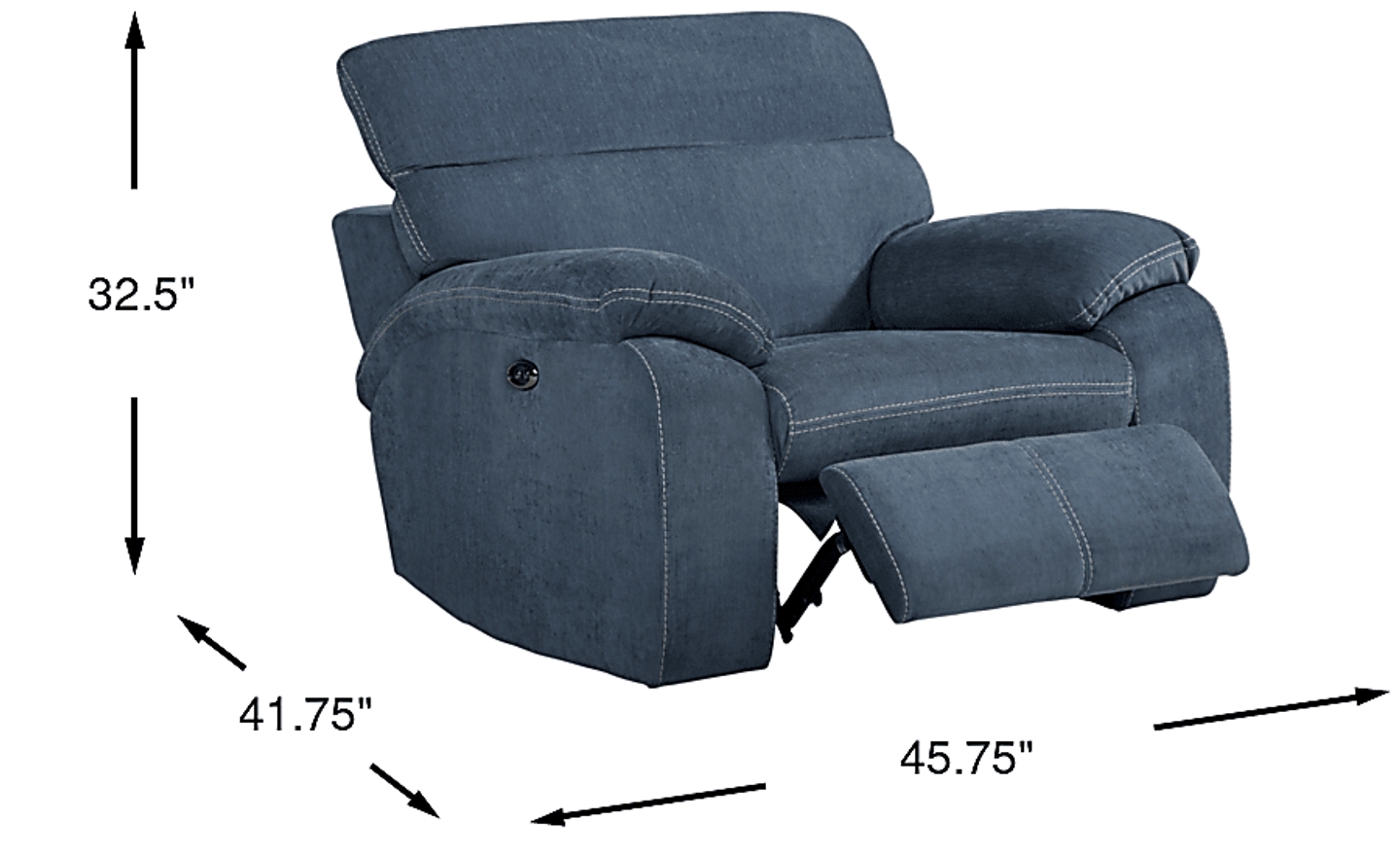 Claiming a casual contemporary style, the Crescent Place power recliner brings you relaxing comfort. Upholstered in navy woven fabric, this chair features padded pillowtop arms for a plush feel. The chaise-style footrest reclines at the touch of a button, allowing you to easily kick back. Contrast stitching adds a touch of detail. Upholstery: 100% Polyester.