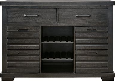 Balancing form and function to create a room in perfect, peaceful harmony, the Creston Point collection finds its yin in bold finishes and its yang in soft textures. Contemporary in style, this dining room is crafted with Mindy veneers finished in antique black, offering a bold yet refined presence. The rectangular table showcases a striking cross-layered veneer pattern that adds depth and texture to the tabletop. A sleek metal bar wraps around the trestle base, providing a comfortable spot to rest your feet. Four tractor stools feature thoughtfully designed angled legs and footrests, bringing both style and support to the ensemble.