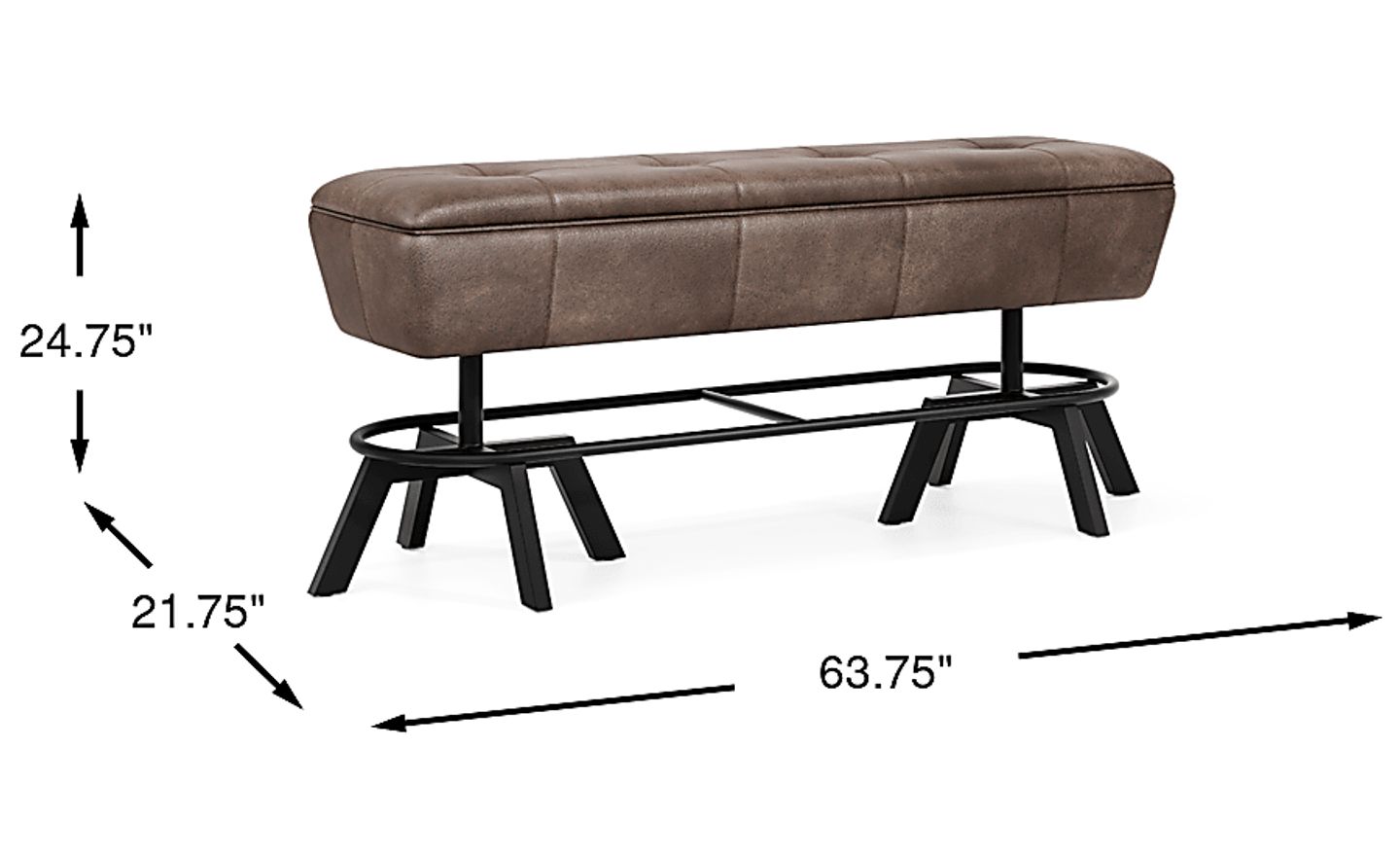 Balancing form and function to create a room in perfect, peaceful harmony, the Creston Point collection finds its yin in bold finishes and its yang in soft textures. Contemporary in style, this counter height bench is crafted with Mindy veneers finished in antique black, offering a bold yet refined presence. Deep tufting and silky smooth brown upholstery add a touch of comfort and sophistication, while the thoughtfully designed base features a sleek metal bar that wraps around angled legs for a comfortable spot to rest your feet.