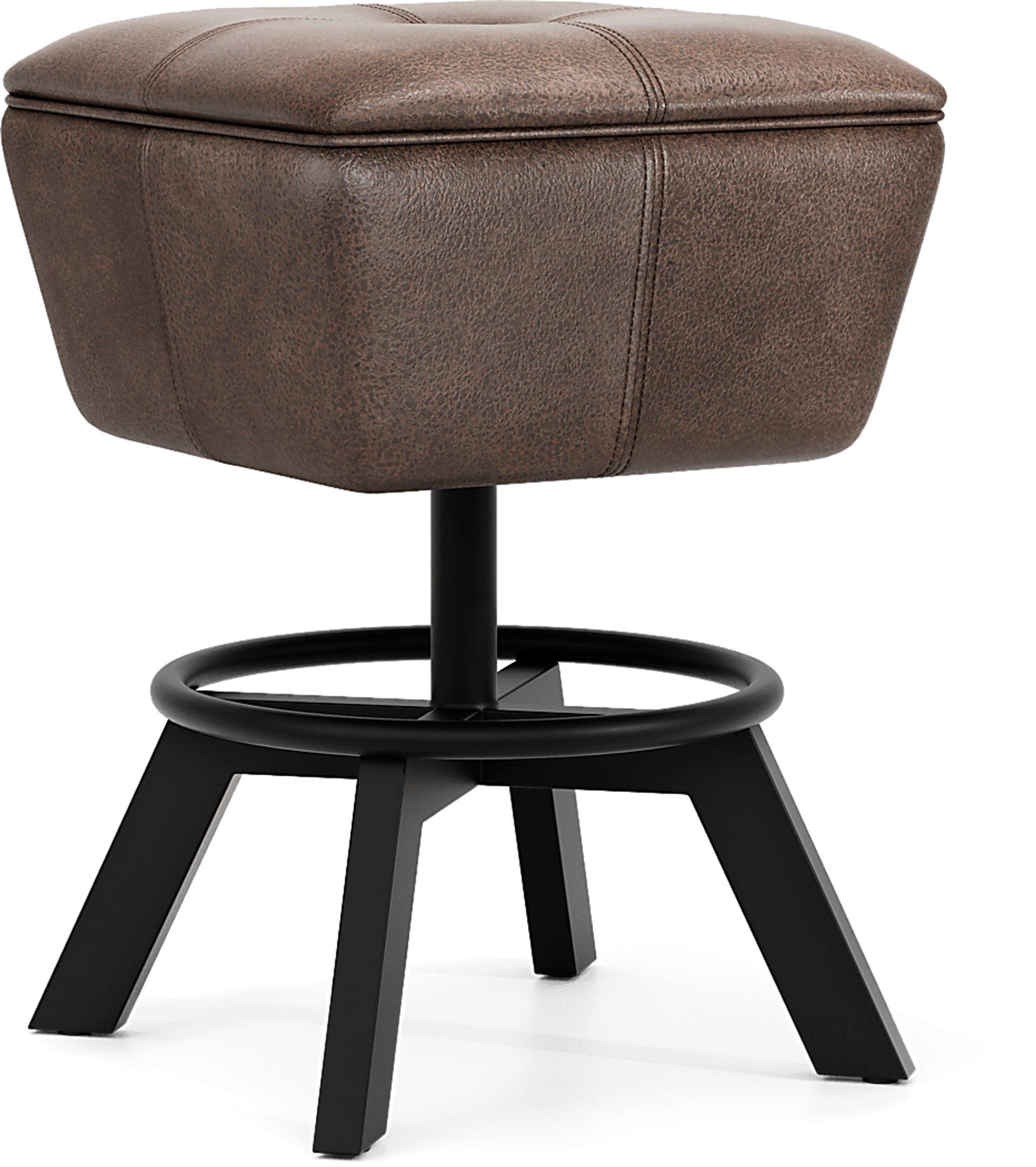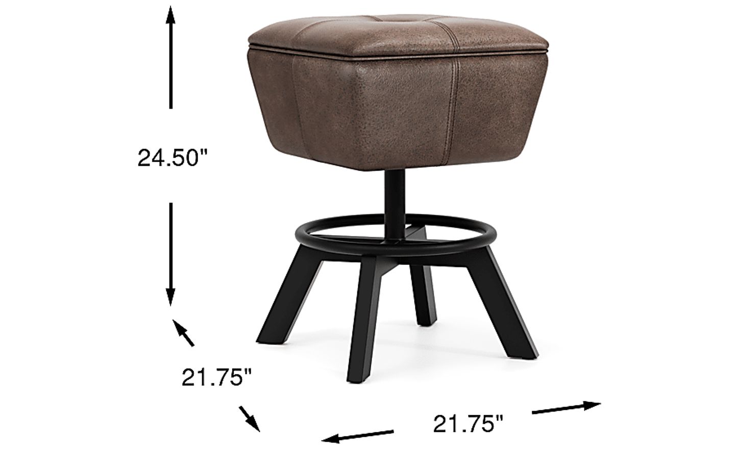 Balancing form and function to create a room in perfect, peaceful harmony, the Creston Point collection finds its yin in bold finishes and its yang in soft textures. Contemporary in style, this swivel counter stool is crafted with Mindy veneers finished in antique black, offering a bold yet refined presence. Deep tufting and silky smooth brown upholstery add a touch of comfort and sophistication, while the pedestal base is thoughtfully designed with four angled legs and a circular metal footrest.