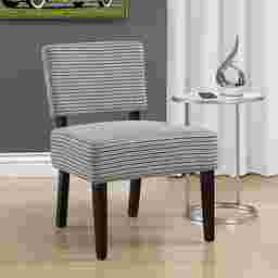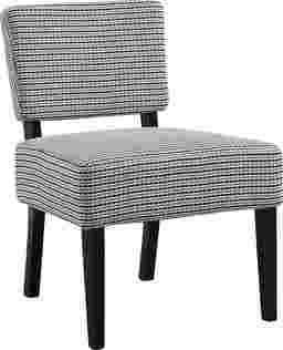 If you are looking for an easy refresh to a room, then we have found it for you in this contemporary and stylish accent chair! This chic armless slipper chair upholstered in a tasteful two-tone light grey and black fabric presents an eye-catching dot design. It boasts a wide medium-firm thick cushioned seat and back, finishing off with a solid wood black frame and legs for a nice contrast. What a versatile chair to place in any room that needs that added boost, whether it's in a bedroom, living room, den or entry way. This accent slipper chair will easily be the new classic in your home! Some customer assembly required.