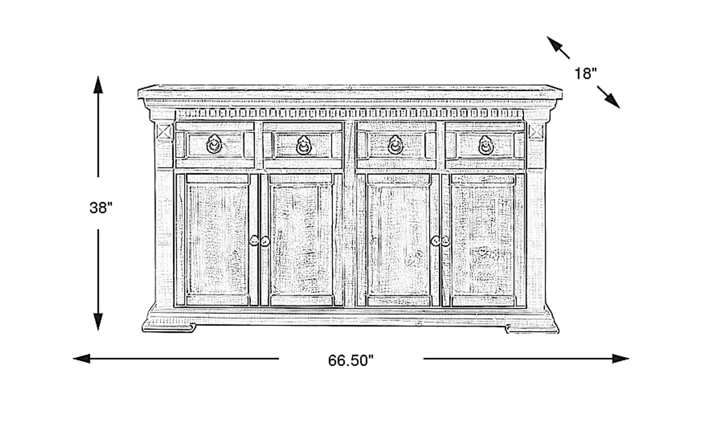 Fine details and a dramatic flair bring a sense of old world grandeur to the Crestwell Manor buffet, delivering the finest in robust, rustic aesthetics. A richly textured top in a brown finish is skirted with dentil molding in distressed white for a nod to its vintage inspiration. Metal ring pulls and knobs adorn two drawers and four cabinet doors, concealing plenty of storage space.