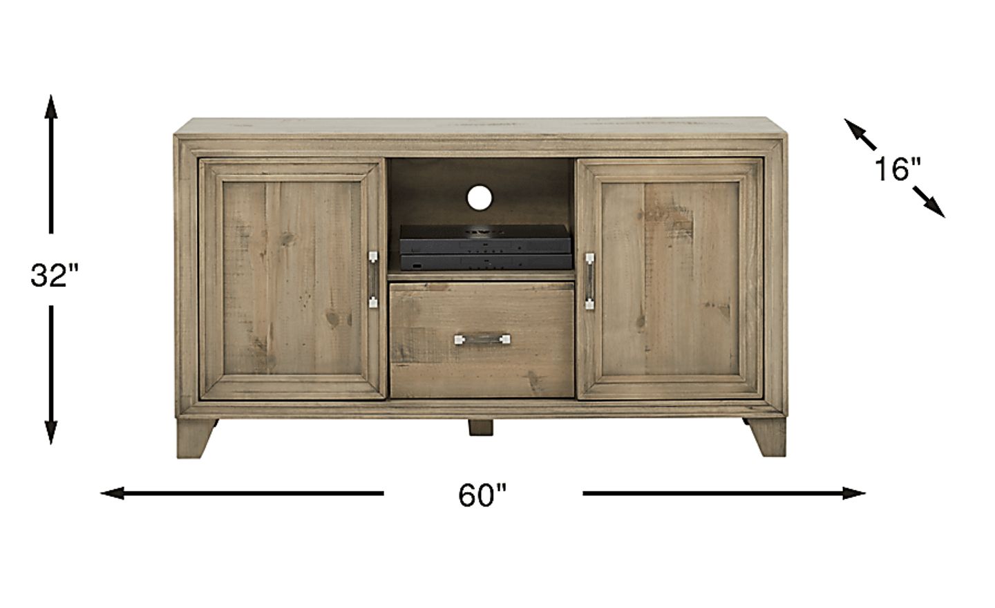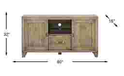 Seeking versatile storage with a charming urban rustic look? The Crestwood Creek console is just what you're looking for! Two doors each feature a shelf, proving an ideal location for storing games or movies. A lower drawer adds additional storage potential, providing a place for remotes or extra cords to be tucked neatly out of sight. Constructed from pine solids, the distressed wire brushed stone gray finish is accented with satin nickel hardware.