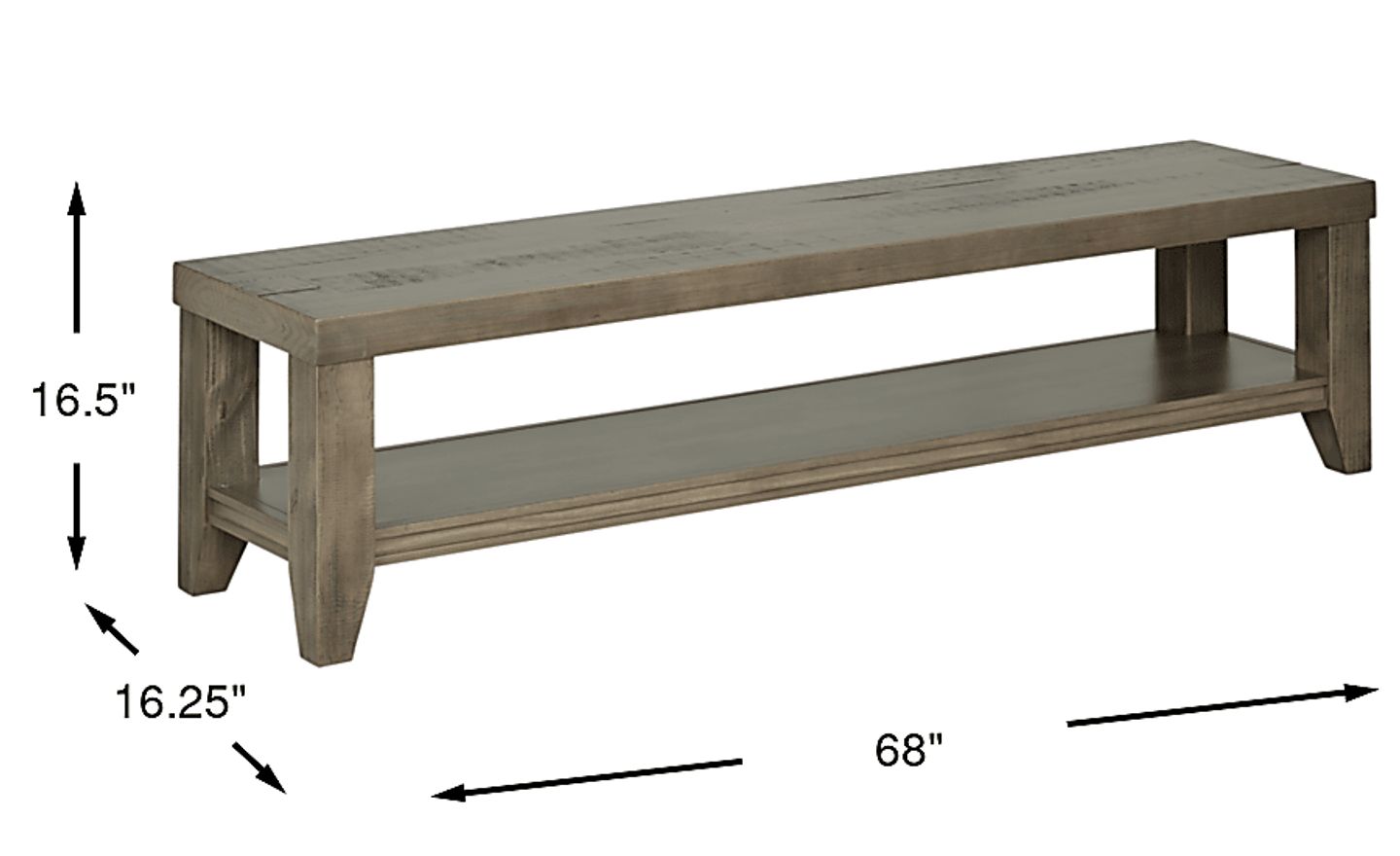 Add the finishing touch to your bedroom with the Crestwood Creek bed bench. This versatile seat looks great when placed at the end of the bed, and thanks to a lower shelf, it can easily serve as a place to display books or other odds and ends. Constructed from pine solids and pine veneers, a brushed stone gray finish has an attractive distressed quality to it that makes this bench have a charming rustic-meets-industrial flare.