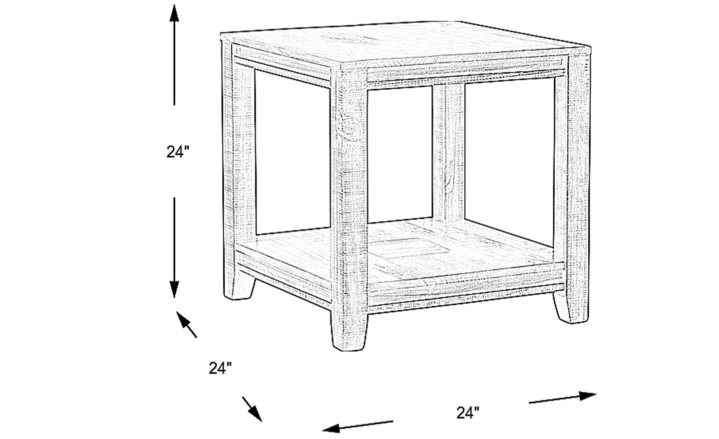 Boasting a charming urban rustic look, the Crestwood Creek end table is the perfect companion for a sofa, loveseat or chair. The 24 inch square top provides a smooth surface for a lamp and other items, while the lower shelf is idea for display or storage. The table is crafted with pine solids and pine veneers in a brushed stone gray finish with subtle distressed effects.