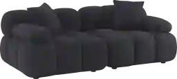 Introducing the Crianza black loveseat, featuring ultra-soft upholstery that brings unmatched comfort. The deep hand-tufted structure creates cushioning curves reminiscent of a brioche bun, enveloping you in a pillowy silhouette. With a modular layout allowing for endless configuration possibilities, the movable cushions add versatility, enabling you to customize your space easily. Customer assembly is required.