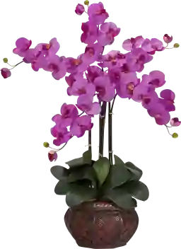 The Criselda silk flower makes for an elegant and pleasant accent to any interior space. Its rich pastel colors easily adds a touch of Asian beauty to any setting. Hard not to admire, the 31 inch high arrangement resembles a miniature tree thus enhancing its already delicate look. Set atop a bed of green and a tasteful island inspired vase, this delicate looking flower lasts forever with no watering ever!
