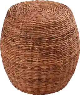 To preserve the beauty of the handwoven rattan, we recommend regular dusting with a soft cloth or a vacuum attachment with a brush to reach into the weave. For spills, blot immediately with a soft, slightly damp cloth and mild soap. Based on our expertise with natural fibers, we recommend keeping this table indoors and away from direct sunlight or high-moisture areas to prevent the fibers from fading or becoming brittle over time.