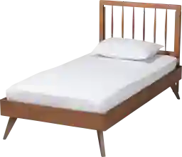 This bed is a versatile piece that blends vintage charm with mid-century modern aesthetics. The combination of the classic spindle headboard and the contemporary angled legs makes it a perfect centerpiece for a wide range of styles, from eclectic bohemian to minimalist modern.
