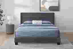 Sweet dreams take flight in this very cool Cromwell wing bed. The hand crafted nail head accents draw your eye to the sleek design that blends so well with your bedroom. Posture flex slats comfortably support your mattress, mattress required but not included, with no need for a box spring or foundation. Customer assembly is required.