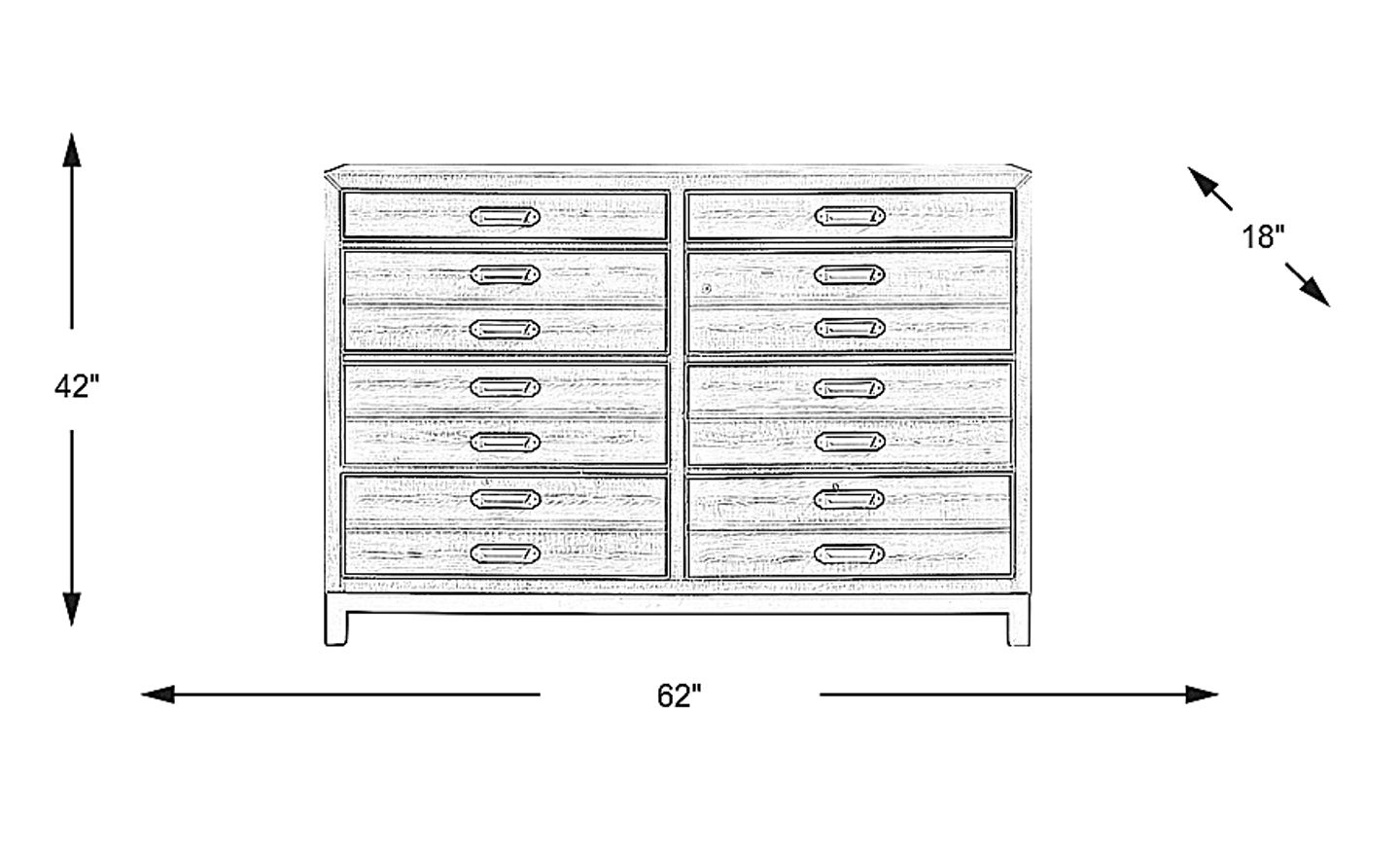 The natural look of wood combines seamlessly with metal elements in the eight drawer Crossgate white dresser. Combining the feel of the past and with styles and industrial accents of the present, it's made of pine wood solids and veneers in a warm brown finish with quality construction that combines a beautiful look with long lasting craftsmanship. Featuring zinc pulls, its black metal frame and legs add contrast and a visually interesting combination of textures and materials. Top drawers and dustproof bottom drawers are built with English and French dovetail joints for added strength as well as side-mounted ball-bearing glides for a smooth, easy pull time after time.
