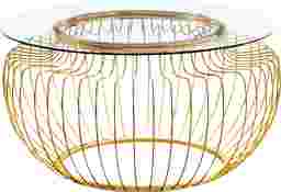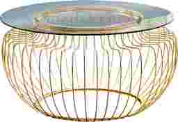 If you want a unique accent piece to anchor your living room, then look no further than this elegant round Crossprairie coffee table with a gorgeous open wire, metal drum shaped base. The spacious tempered glass top is large enough to place a decorative display or some coffee table books, while the gold metal finish on the sturdy wired frame will bring that wow factor to your decor. The size is perfect even for small spaces, with its contemporary glam boho appeal. Customer assembly is required.