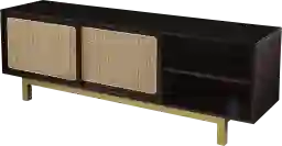 Slide into sleek storage with this low-profile Crosstimbers media cabinet. Adjustable shelves let you organize everything from movies to electronics to collectibles, while a spacious tabletop displays photos or dcor with ease. Give your living space a hint of natural texture with rattan accents, beautifully complementing both modern and traditional design styles. Host movie night like a pro with this multipurpose console in your media room or den. Customer assembly is required.