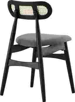 Add an eye-catching accent to your modern dining space with the Crowex black side chair, set of 2. Every detail of this uniquely made chair stands out, from the a-frame-like construction to the sleek round shaped rattan backrest. A sturdy wood frame with fabric upholstery on the seat provides a cozy and confident setting for entertaining whenever you please.