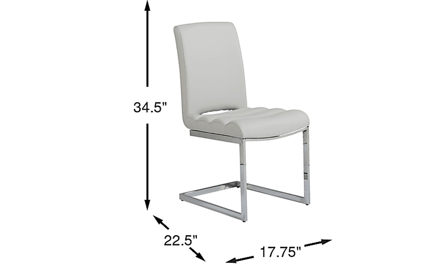 With its chic silhouette, channeled seat and light gray upholstery, the Crown Court side chair brings distinctive modern style to the table. A sleek chrome base offers support.