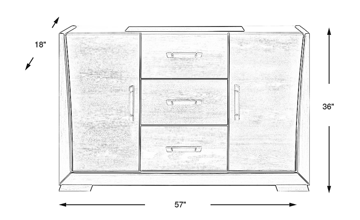 Whether you're having dinner with family, serving martinis on the rocks, or skipping straight to dessert, the royale decadence of the Crown Point server is not to be missed. Crafted of wood solids, this piece is finished in a metallic champagne color with two doors and three drawers finished in a glossy white color. Front and back English dovetails on each drawer add enhanced durability while side mounted ball bearing drawer glides make opening and closing them a breeze. Additionally, the bottom drawer is sanded smooth, making it perfect to store away tablecloths, table settings and more.