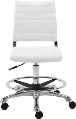 A ribbed seat, combined with soft leatherette join to form an impossibly comfortable drafting stool. With adjustable seat height, and footrest, one can be certain the Croyle white office chair will fit any occasion. Not to mention a sturdy steel frame and nylon casters make this stool contract grade, fit for any residential or commercial setting. Customer assembly is required.
