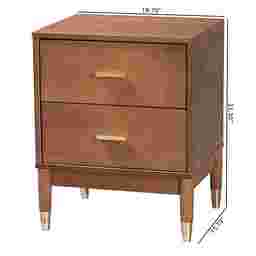 Outfit your bedroom with a sense of renewed grace through the lovely Crystalsys brown nightstand. This mid-century inspired piece is crafted from sturdy wood. Two drawers offer convenient storage for bedside essentials while reserving the tabletop for nightly use. The Crystalsys utilizes tapered legs embellished with metal caps for excellent stability in eye-catching design. Slim metal drawer pulls lend minimalist charm, making the Crystalsys an elegant bedroom accessory. Customer assembly is required.
