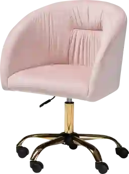 Develop your home office into an adored space with the enchanting Cubbedge pink office chair. This lovely piece consists of a solid metal base supporting a round seat upholstered in alluring velvet fabric. The sloped armrests form a smooth silhouetted while tufted accents lend visual texture. The Cubbedge features caster wheels for superb mobility. 360-degree swivel and adjustable height options offer versatility, making the Cubbedge office chair a terrific choice for any space. Customer assembly is required.
