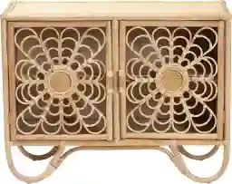 Reinvigorate your space with the rustic flair of the lovely Cubetales brown storage cabinet. This bohemian piece is handcrafted from sustainably sourced natural rattan. The doors are comprised of curled rattan poles for a stunning geometric display that enhances the decorative quality of the piece. The Cubetales will arrive fully assembled and feature two interior shelves perfect for organizing and decluttering busy rooms while reserving the tabletop as a fantastic display area. Curved legs create an eye-catching silhouette. Rattan is a product of nature and may have variations in areas such as, but not limited to, color, pattern, grain and texture. The hair-like strands of rattan/rattan-fiber are common due to the nature of the material.