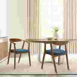 Elevate your dining area with the supreme style and comfort of the Cubewater blue armchair, set of 2. Filled with mid-century charm, these dining room chairs serve as a stunning complement to any modern or contemporary home. They feature a curved and hugging back to support you in just the right places. Completed with slender angular legs, these kitchen chairs make a stunning statement. They deliver an airy silhouette vouching for hours of comfortable sitting. The chair is mindfully crafted from rubberwood for elegance, comfort, and durability, serving you for years to come. Customer assembly is required.