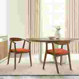 Elevate your dining area with the supreme style and comfort of the Cubewater orange armchair, set of 2. Filled with mid-century charm, these dining room chairs serve as a stunning complement to any modern or contemporary home. They feature a curved and hugging back to support you in just the right places. Completed with slender angular legs, these kitchen chairs make a stunning statement. They deliver an airy silhouette vouching for hours of comfortable sitting. The chair is mindfully crafted from rubberwood for elegance, comfort, and durability, serving you for years to come. Customer assembly is required.