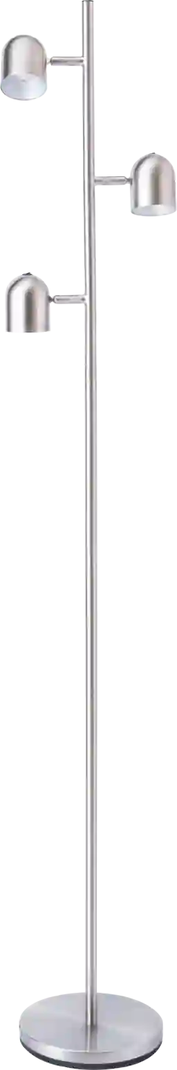 Sleek, modern style presents a studio-inspired look with a low profile, adding intrigue to the Cunningham Court modern three-light LED floor lamp. Ideal for a contemporary living area or home office, this energy-efficient floor lamp adds subtle, tasteful retro-influenced vibes and modern silver finish over metal construction. Adjust metal shades to create tailored lighting positions. This floor lamp features on-off rocker switches on each shade. Partial assembly may be required.