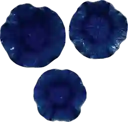 The Cusic trio of ceramic flowers with detailed veining, glazed in rich cobalt blue. This may be hung on wall or used as tabletop accessory. Mounting assembly is required. Customer assembly is required.