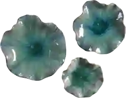 The Cusic trio of ceramic flowers with detailed veining, glazed in fresh Caribbean tones. This may be hung on wall or used as tabletop accessory. Mounting hardware is included. Customer assembly is required.
