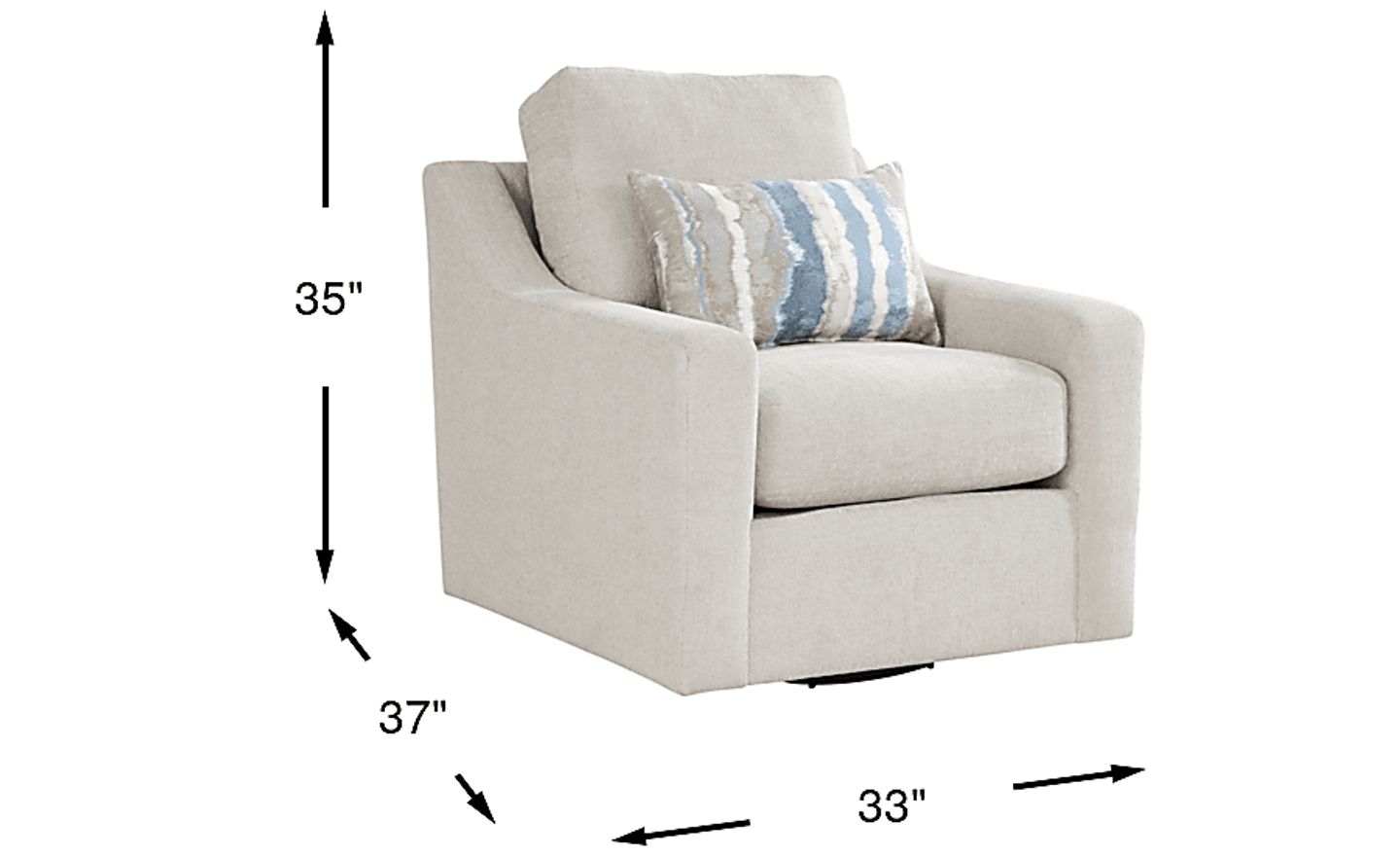 Perfect for lazy days or relaxing with the family on cozy movie nights, the Cynthia swivel chair moonlights as a classy crowd-pleaser ideal for intimate get-togethers and light night parties with friends. Soft woven dove gray fabric meets in welted seams along each edge for a subtle design touch. Its super spacious seat has convenient reversible cushions complemented by comfortably casual low-profile track arms. A 360 degree swivel function makes it easy to keep conversations going from anywhere in the room. Upholstery: 100% Polyester.