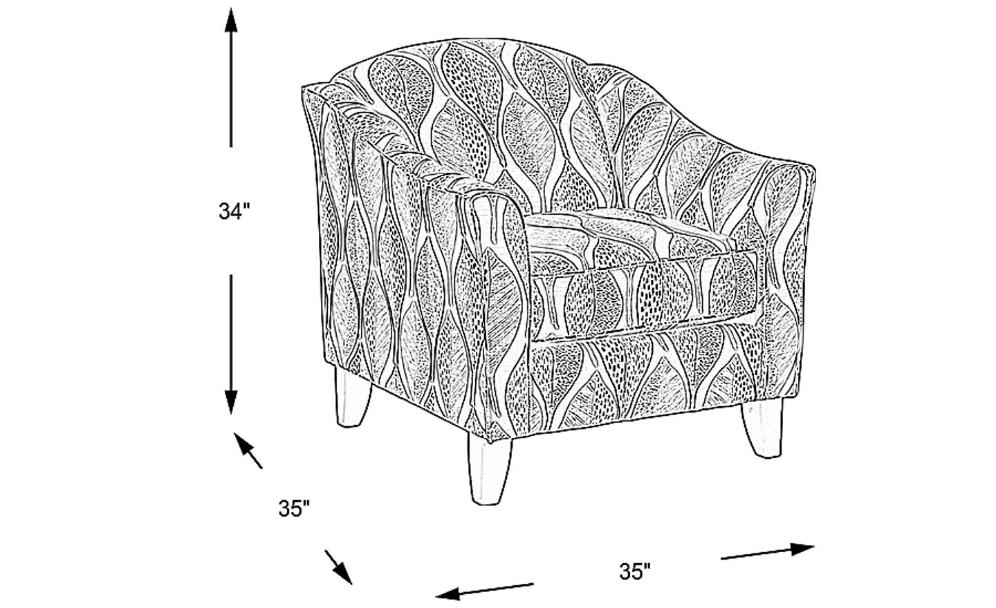 Add a fresh pop of color to any neutral toned room when you add the Cypress Gardens accent chair. It features a flowing pattern in shades of blue, gray, green and ivory. The tight back and box bordered seat cushion offer comfortable support. Welted seams add a quality finishing touch. Tapered wooden legs extend from the bottom. 100% Polyester.