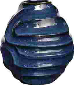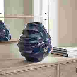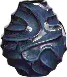 A stunning ceramic Cyria vase with a deep, glossy blue glaze and sculptural spiral ridges. Its fluid design captures movement and elegance, making it a bold statement piece for any space. Safe for outdoor use, but protection from freezing temperatures is recommended.
